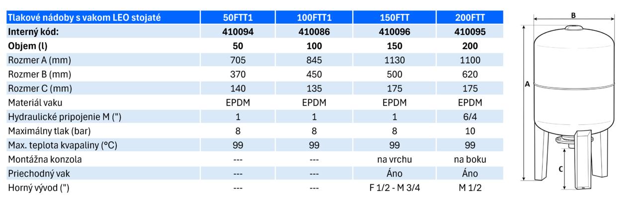 Vertikálna tlaková nádoba LEO 50FTT s objemom 50 litrov je priestorovo úsporné riešenie určené na stabilizáciu tlaku v rozvodoch vody. Vďaka stojatému prevedeniu a použitiu vymeniteľného gumeného vaku s pozinkovanou prírubou poskytuje spoľahlivú ochranu čerpadla pred častým spínaním a zabezpečuje dlhodobú životnosť celého systému domácej vodárne.